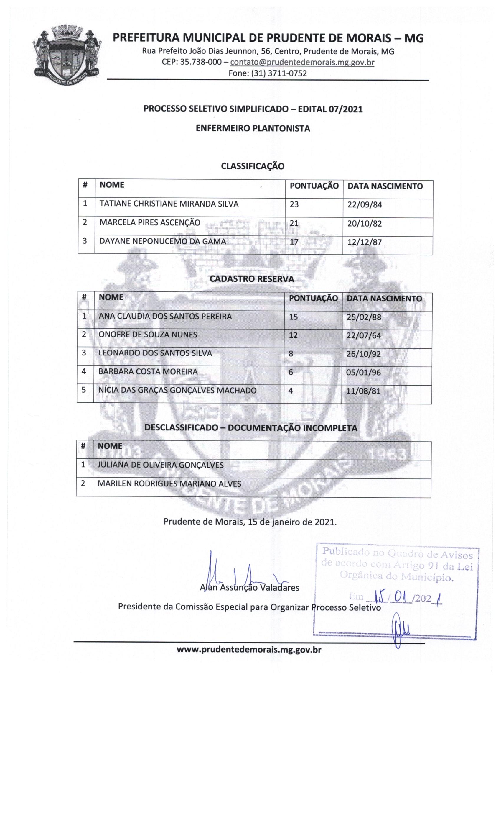EDITAL 7 - Enfermeiro Plantonista