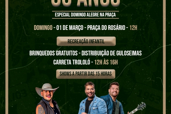 Prefeitura Municipal de Prudente de Morais divulga atrações do 63° aniversário de emancipação do município.